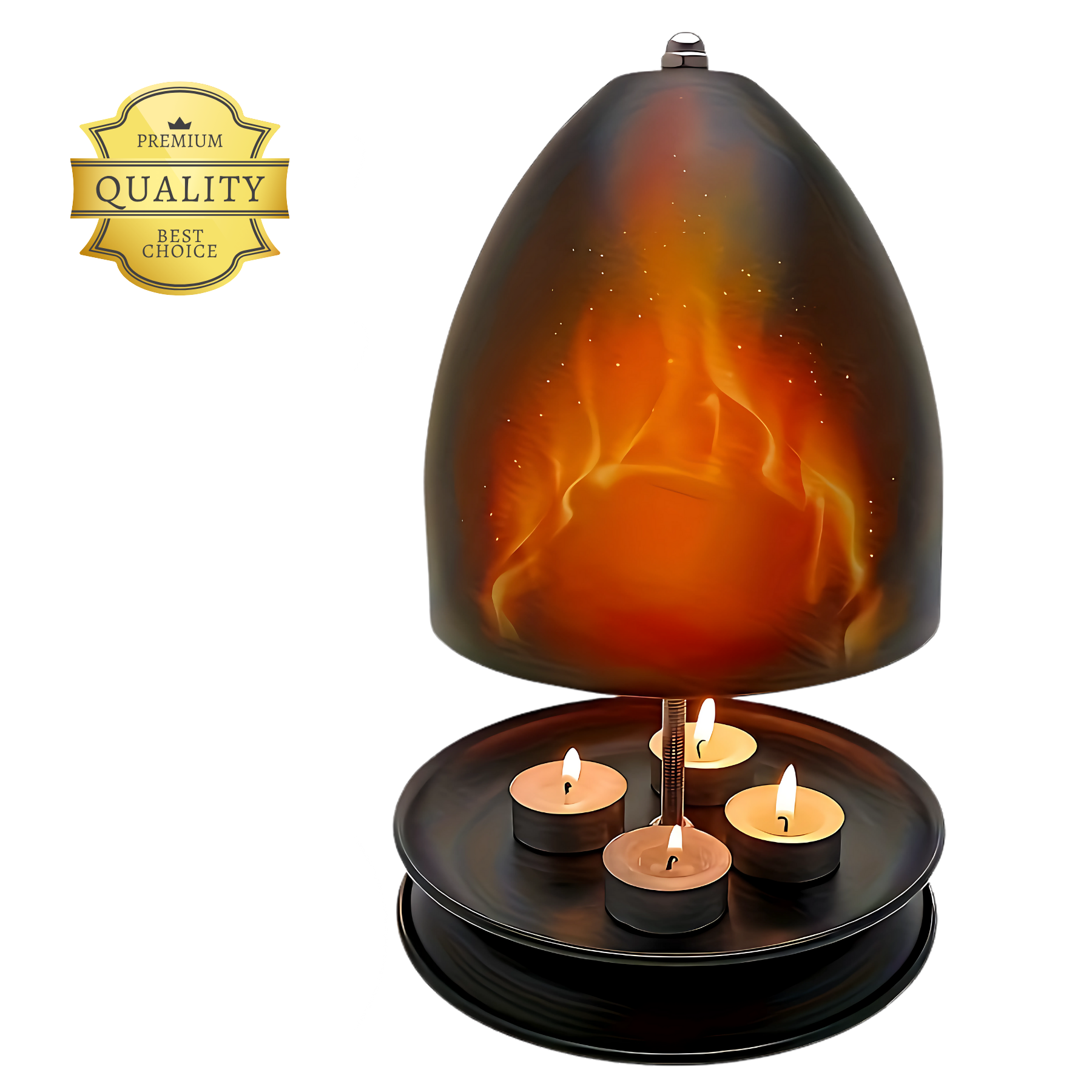 HeatGlow™ använder värmeljus för att värma upp den robusta kupolen. Kupolen sprider sedan mjuk och jämn värme i rummet, samtidigt som ljusen ger en stämningsfull och mysig atmosfär.